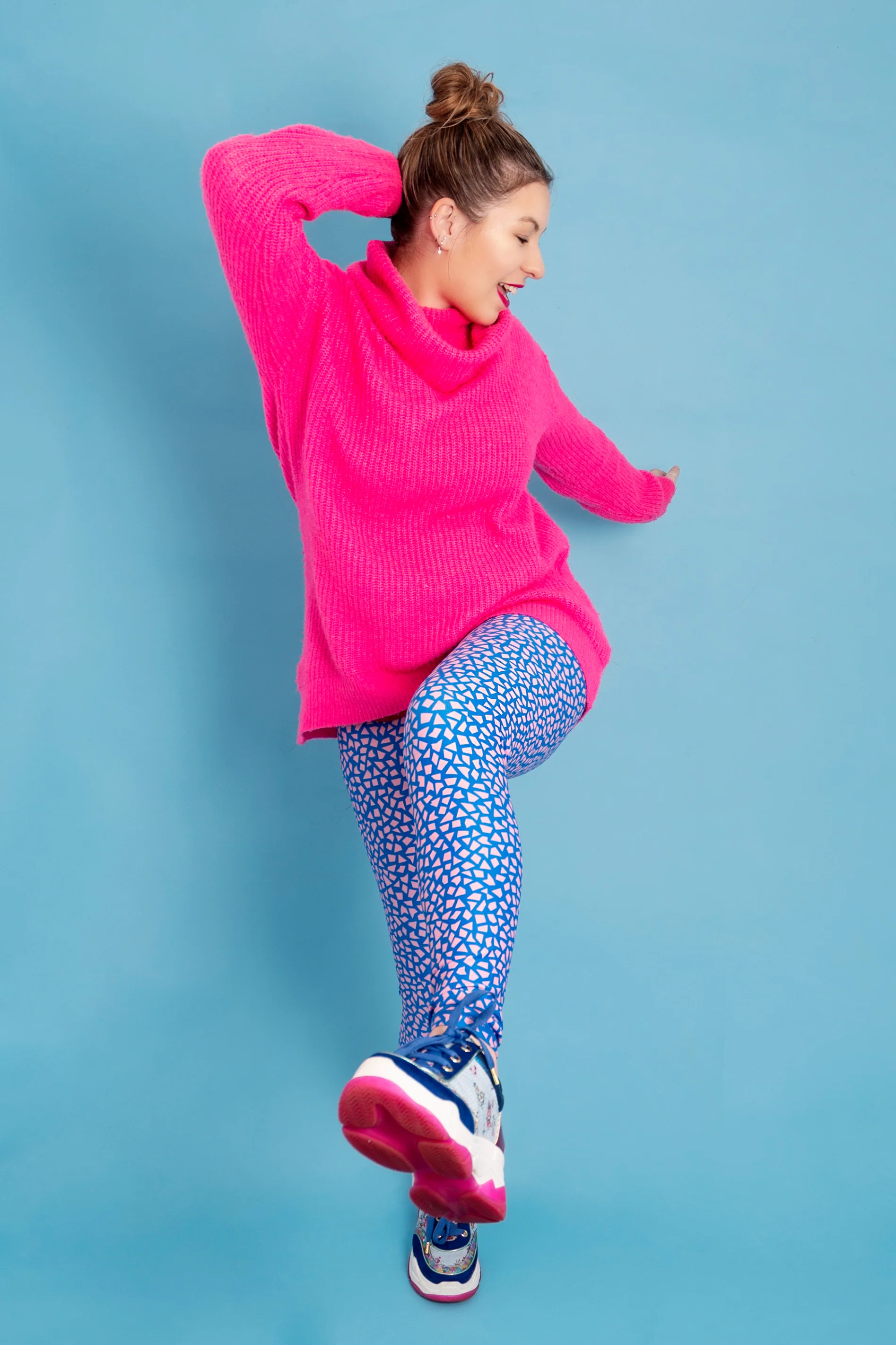 Last Chance - Pink/Blue Terrazzo Women’s Activewear Leggings - Size 4-6 Tall